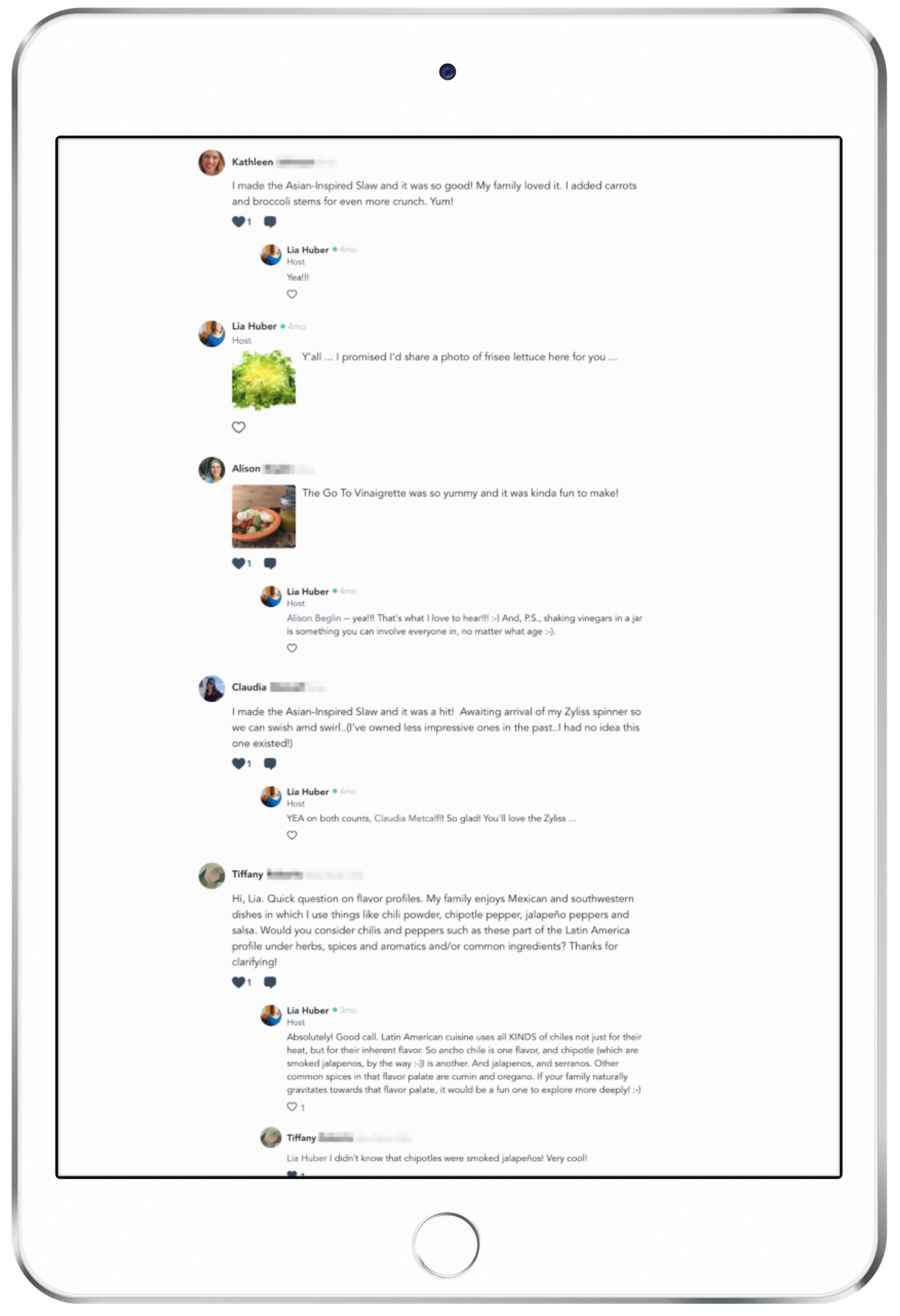 "It's very empowering to have a class that focuses on and supports the home cook. I've been looking for this kind of support for years ... thank you -- this is such a huge gift!"